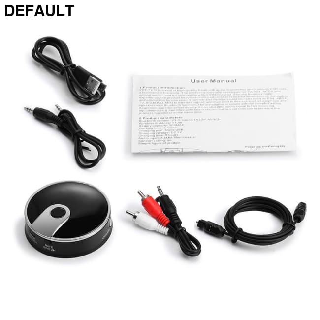 Package: 1 x Bluetooth audio transmitter, 1 x 3.5mm audio cable, 1 x Optical TOSLINK cable, 1 x USB charging cable, 1 x User Manua
