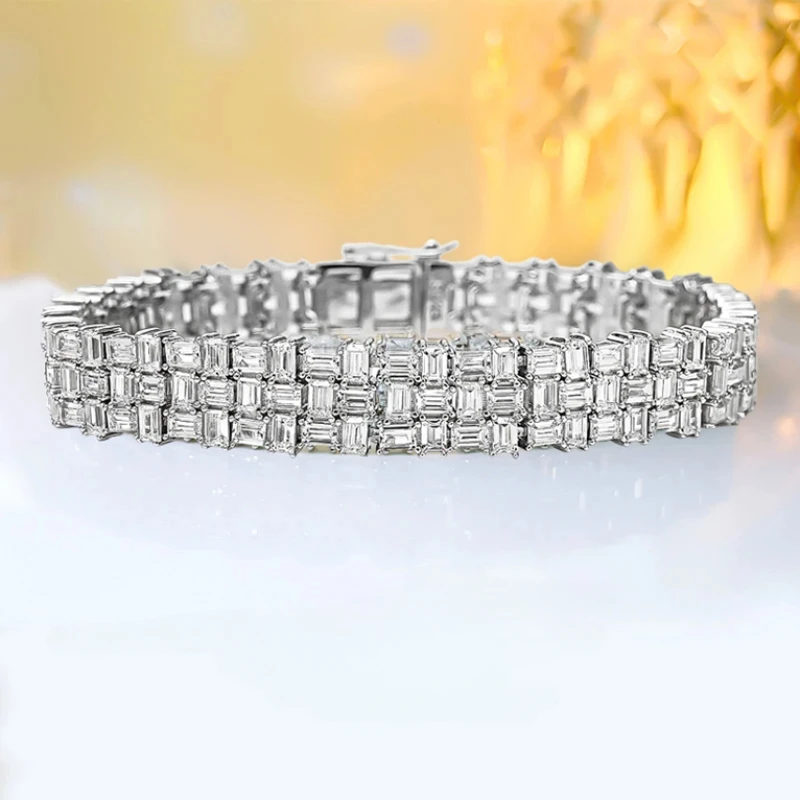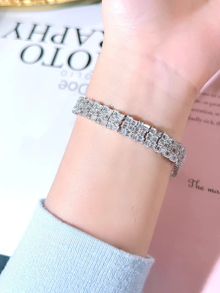 Fashion, Light Luxury, Simple Green Cut Inlaid High Carbon Diamond 925 Versatile Silver Bracelet Wedding Jewelry