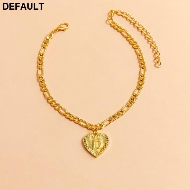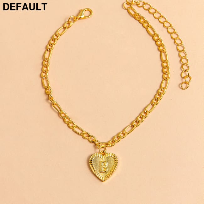 Initial Letter Anklet Gold Color Heart Pendant Foot Bracelets Women B