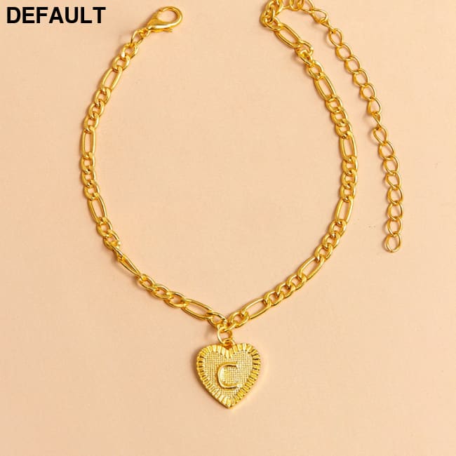 Initial Letter Anklet Gold Color Heart Pendant Foot Bracelets Women C