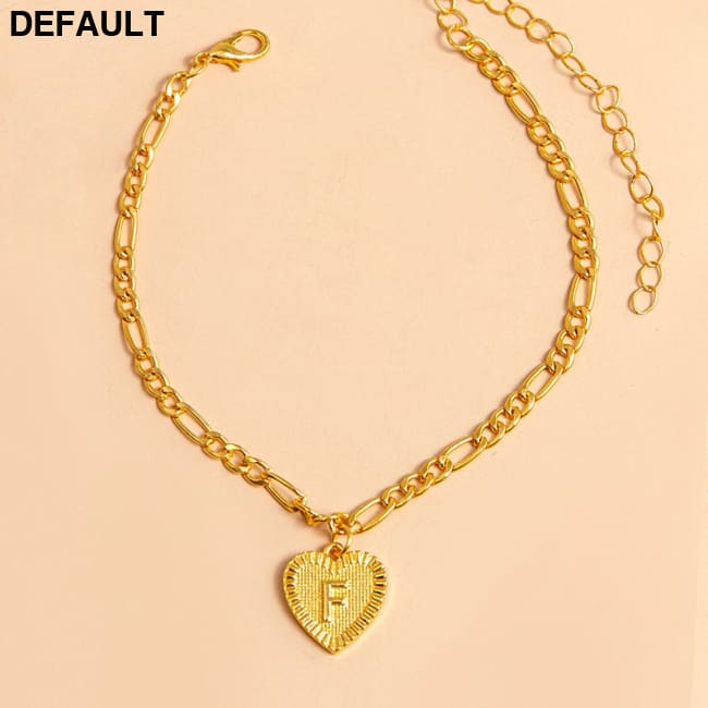 Initial Letter Anklet Gold Color Heart Pendant Foot Bracelets Women F