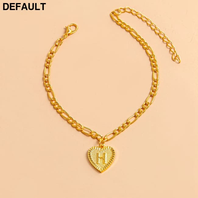 Initial Letter Anklet Gold Color Heart Pendant Foot Bracelets Women H