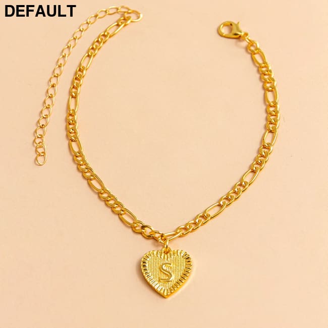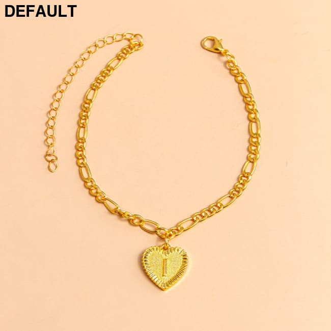 Initial Letter Anklet Gold Color Heart Pendant Foot Bracelets Women J