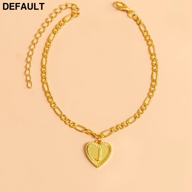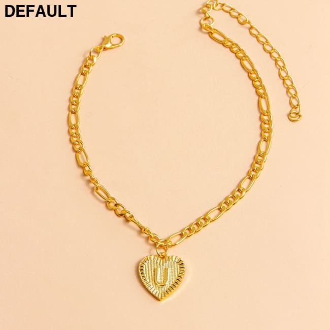 Initial Letter Anklet Gold Color Heart Pendant Foot Bracelets Women U