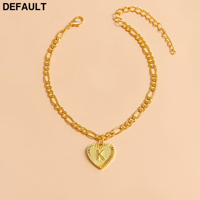 Initial Letter Anklet Gold Color Heart Pendant Foot Bracelets Women K