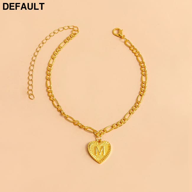 Initial Letter Anklet Gold Color Heart Pendant Foot Bracelets Women M