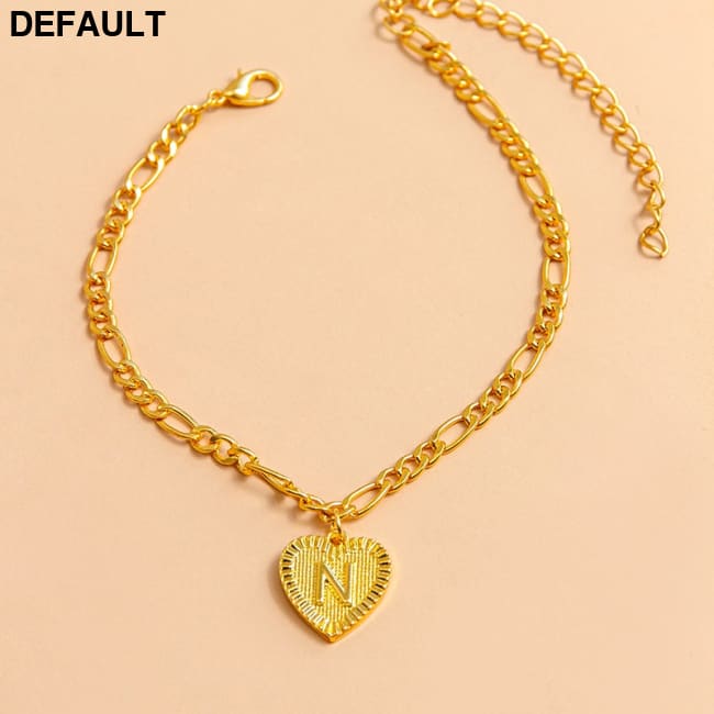 Initial Letter Anklet Gold Color Heart Pendant Foot Bracelets Women N