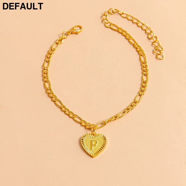 Initial Letter Anklet Gold Color Heart Pendant Foot Bracelets Women P