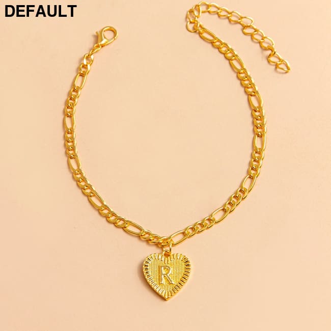 Initial Letter Anklet Gold Color Heart Pendant Foot Bracelets Women R