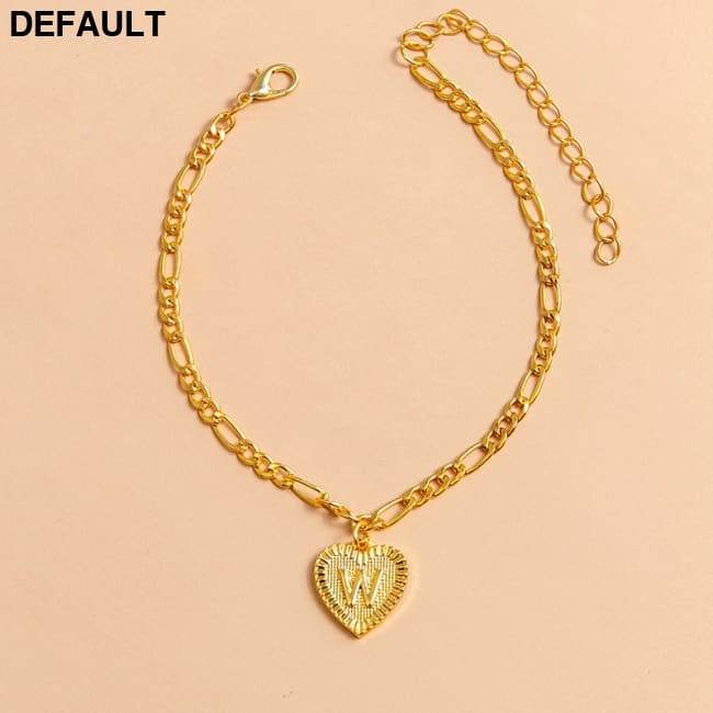 Initial Letter Anklet Gold Color Heart Pendant Foot Bracelets Women V