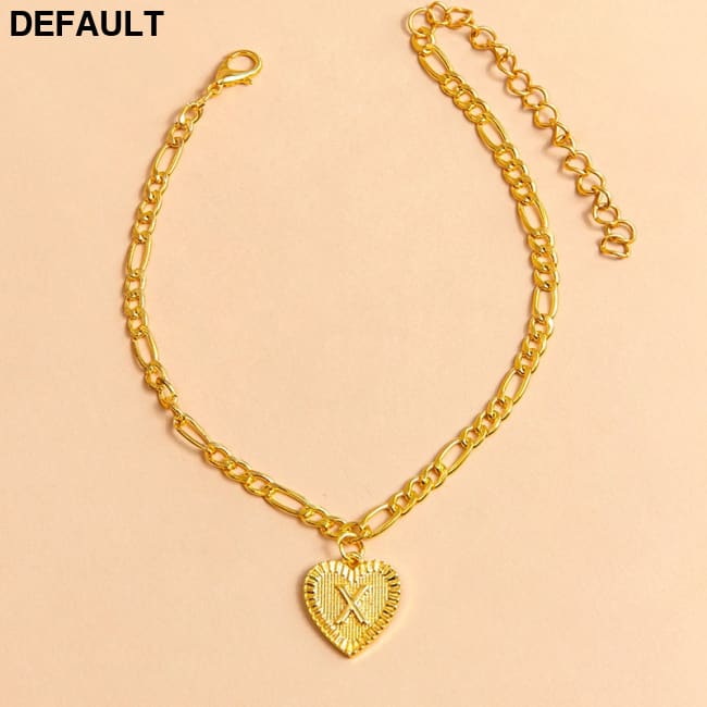 Initial Letter Anklet Gold Color Heart Pendant Foot Bracelets Women X