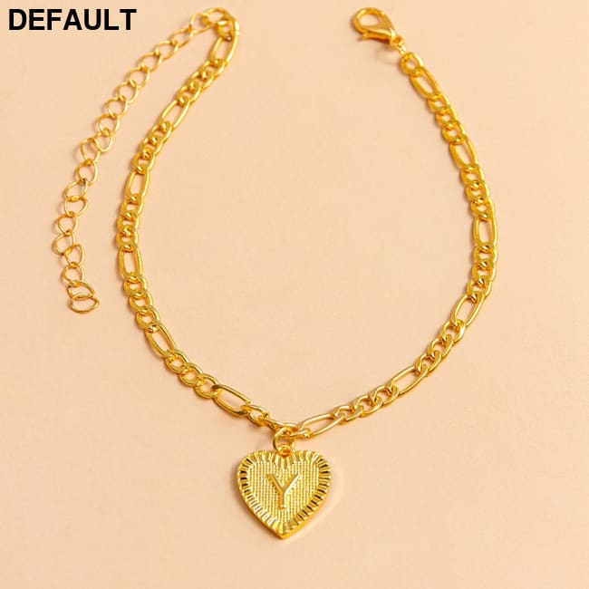 Initial Letter Anklet Gold Color Heart Pendant Foot Bracelets Women Y