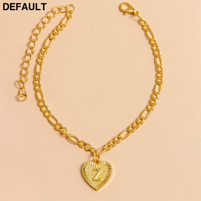 Initial Letter Anklet Gold Color Heart Pendant Foot Bracelets Women Z