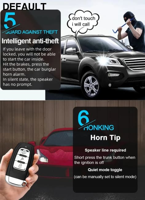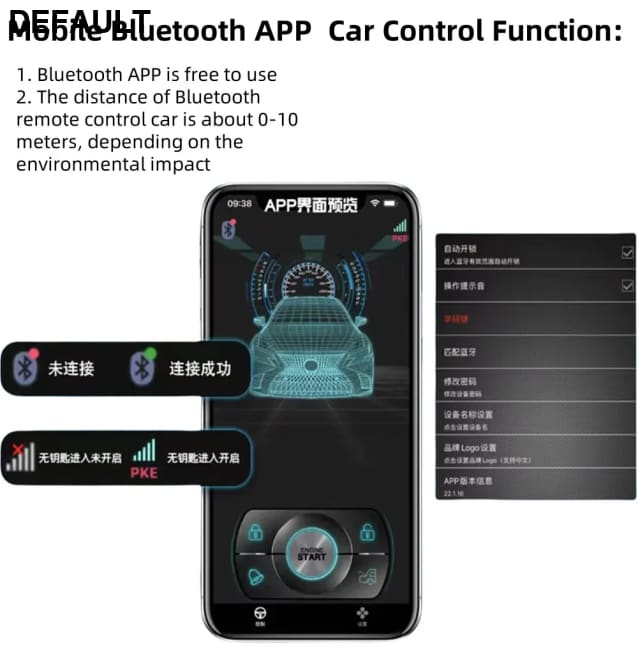 Function: RKE one-key start Bluetooth remote control anti-theft alarm