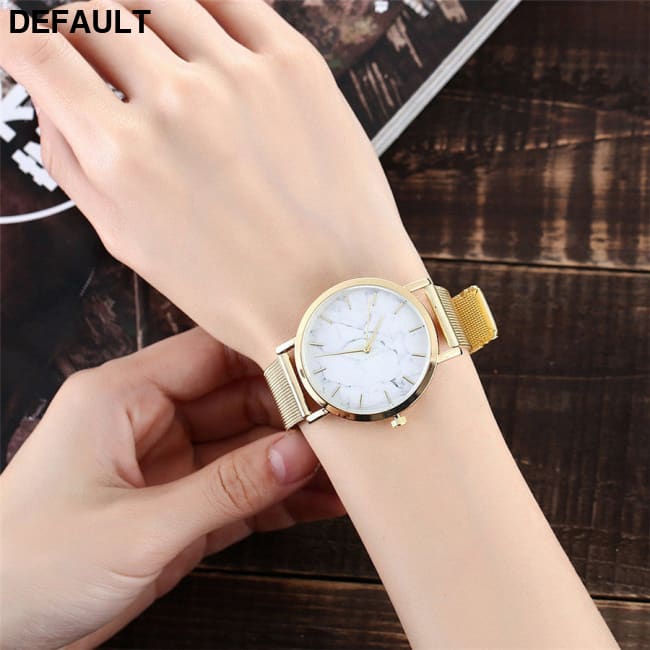 Vansvar fashion brand silver and gold mesh band creative marble wristwatch casual women quartz watches gift relogio feminino
