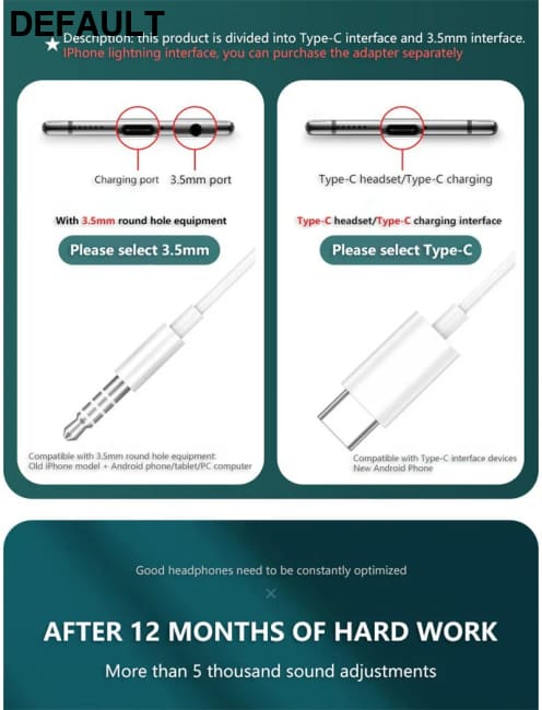 There are two types of earphones: 3.5mm round port and Type-C port,Please choose the appropriate interface according to your mobile phone earphone hole model.